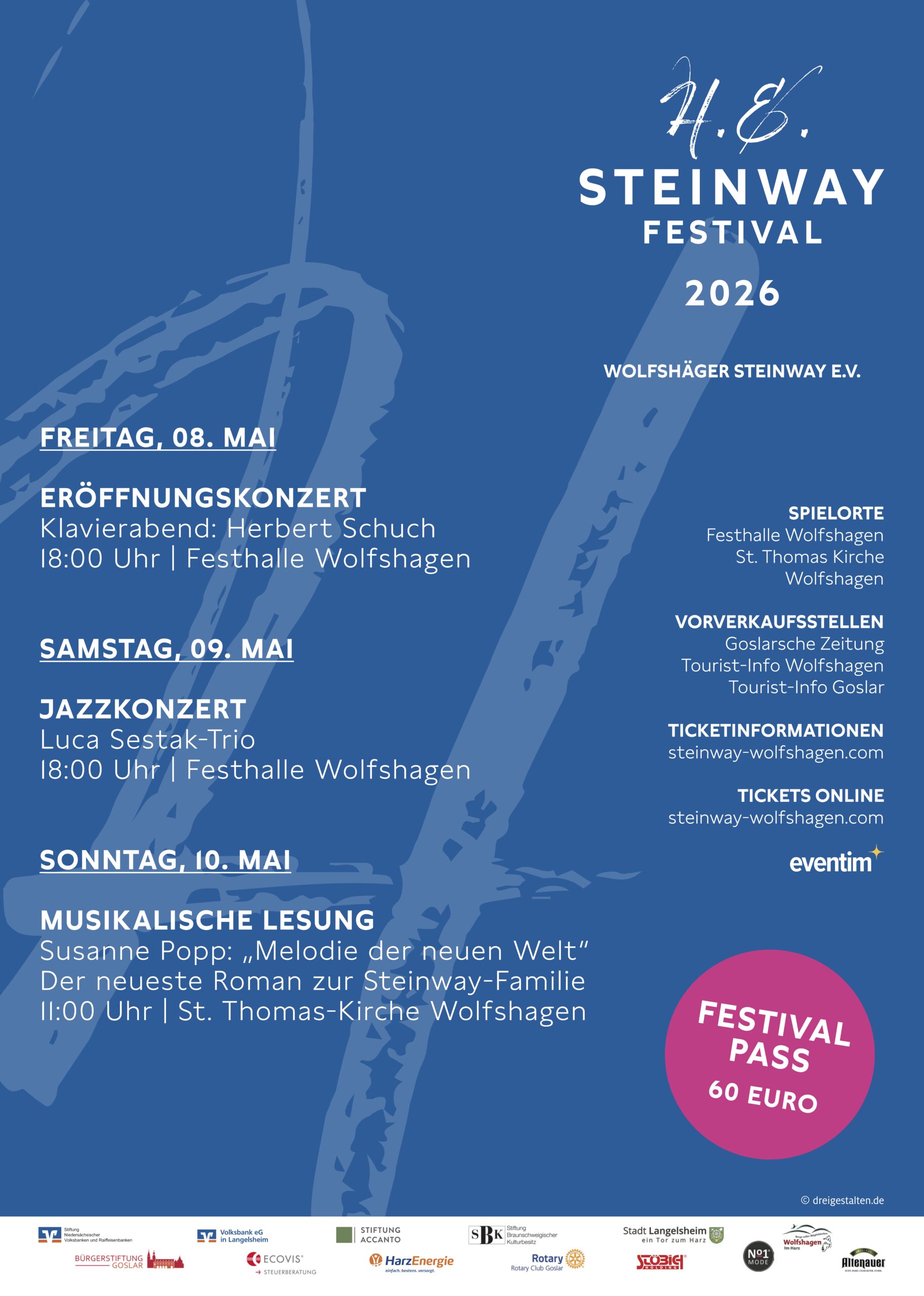 Die Idee dieses Weges, die auf Initiative des Wolfshäger Steinway e.V. entstanden ist, war nur mit der Unterstützung zahlreicher Partner möglich. Dazu zählen zu den bereits genannten die Gemeinheit Wolfshagen, der Harzklub Lautenthal, Seesen und Wolfshagen, die Harzwasserwerke, die Niedersächsischen Landesforsten, Forstamt Seesen, die Stadtmarketing & Tourismus Seesen, die Straßenmeisterei Seesen sowie die Untere Naturschutzbehörde des Landkreis Goslar.